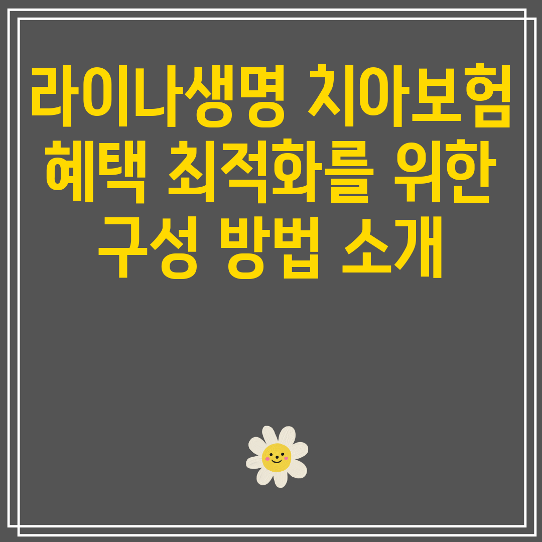 치아 보험은 치아와 치은 건강을 유지하는 데 중요한 재정적 안전망입니다. 라이나생명의 치아 보험은 포괄적인 혜택을 제공하여 귀하의 치과 치료 비용을 관리하는 데 도움이 될 수 있습니다. 이 블로그 게시물에서는 라이나생명 치아 보험에서 최대한의 혜택을 얻기 위한 구성 방법에 대해 알아봅니다.