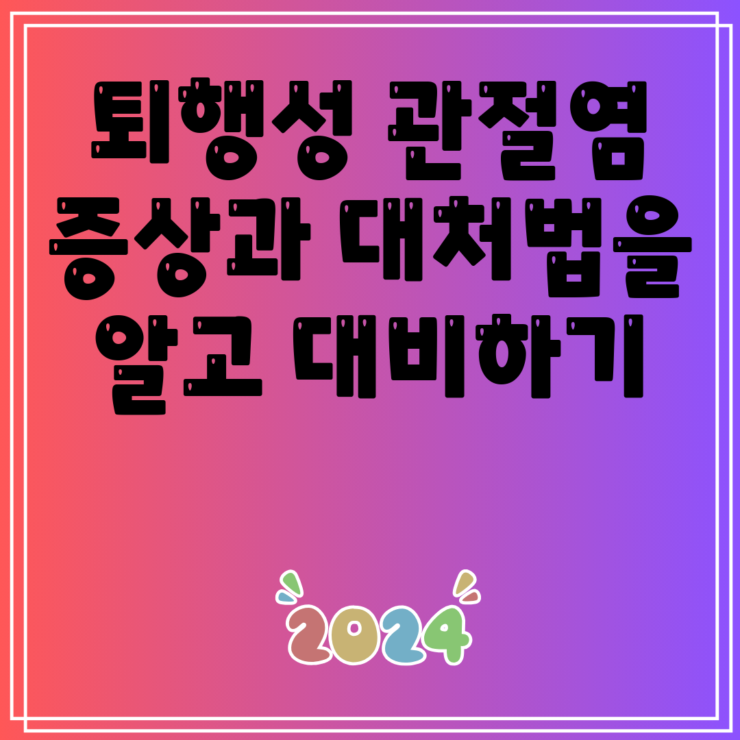 퇴행성 관절염은 관리하기 어려운 만성 질환이 될 수 있지만, 증상을 완화하고 생활의 질을 향상시키는 방법이 있습니다. 증상을 알고 있고, 적절한 치료와 대처법을 찾고, 건강한 라이프스타일을 유지하는 것은 통증과 불편함을 관리하는 데 필수적입니다.