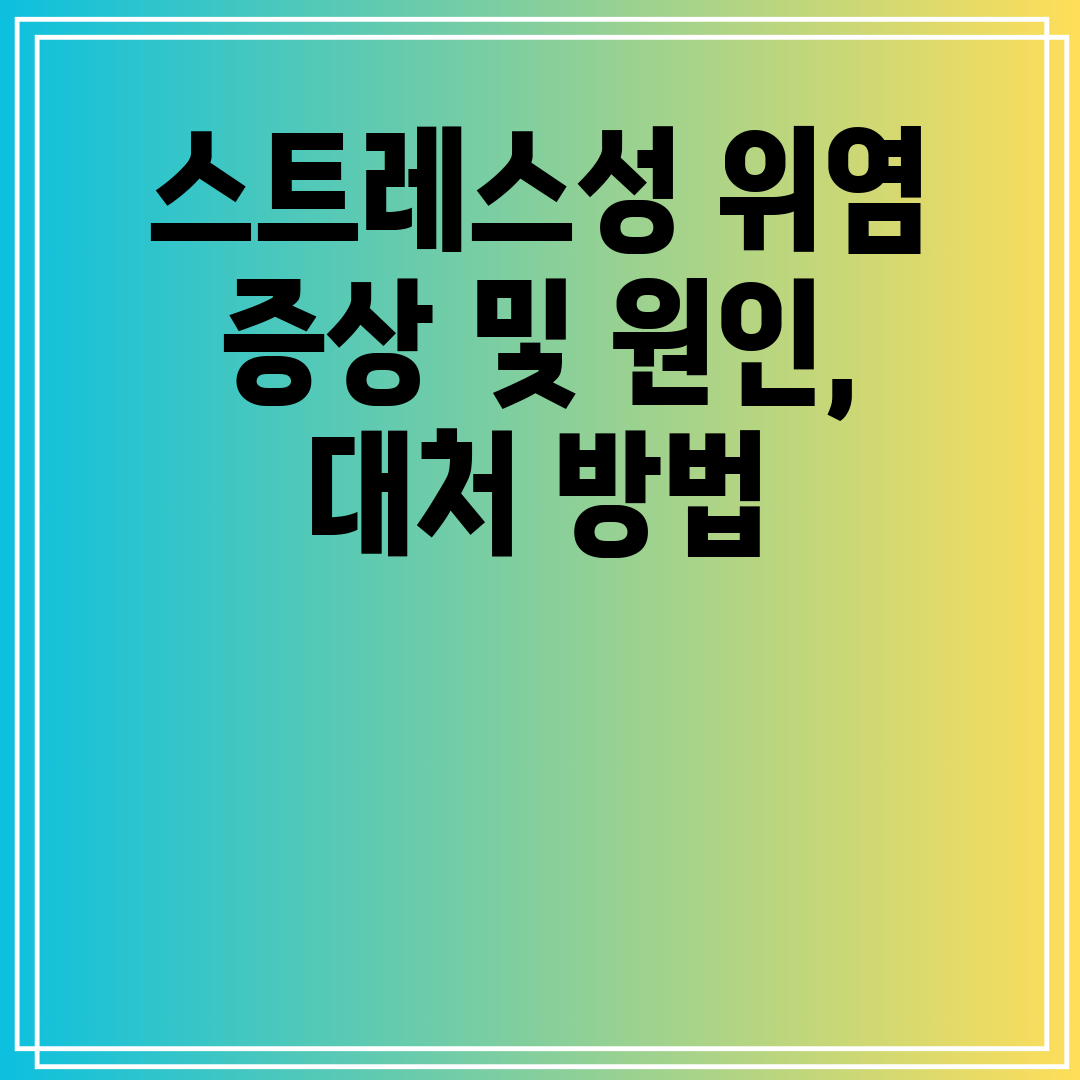 답변: 예, 스트레스 원인을 식별하고 가능하면 제거하는 것이 중요합니다. 작업 과부하, 관계 문제 또는 재정적 곤란 등의 요인이 스트레스를 유발할 수 있습니다. 스트레스 원인을 해결하면 장기적으로 위염 증상을 관리하는 데 도움이 될 수 있습니다.