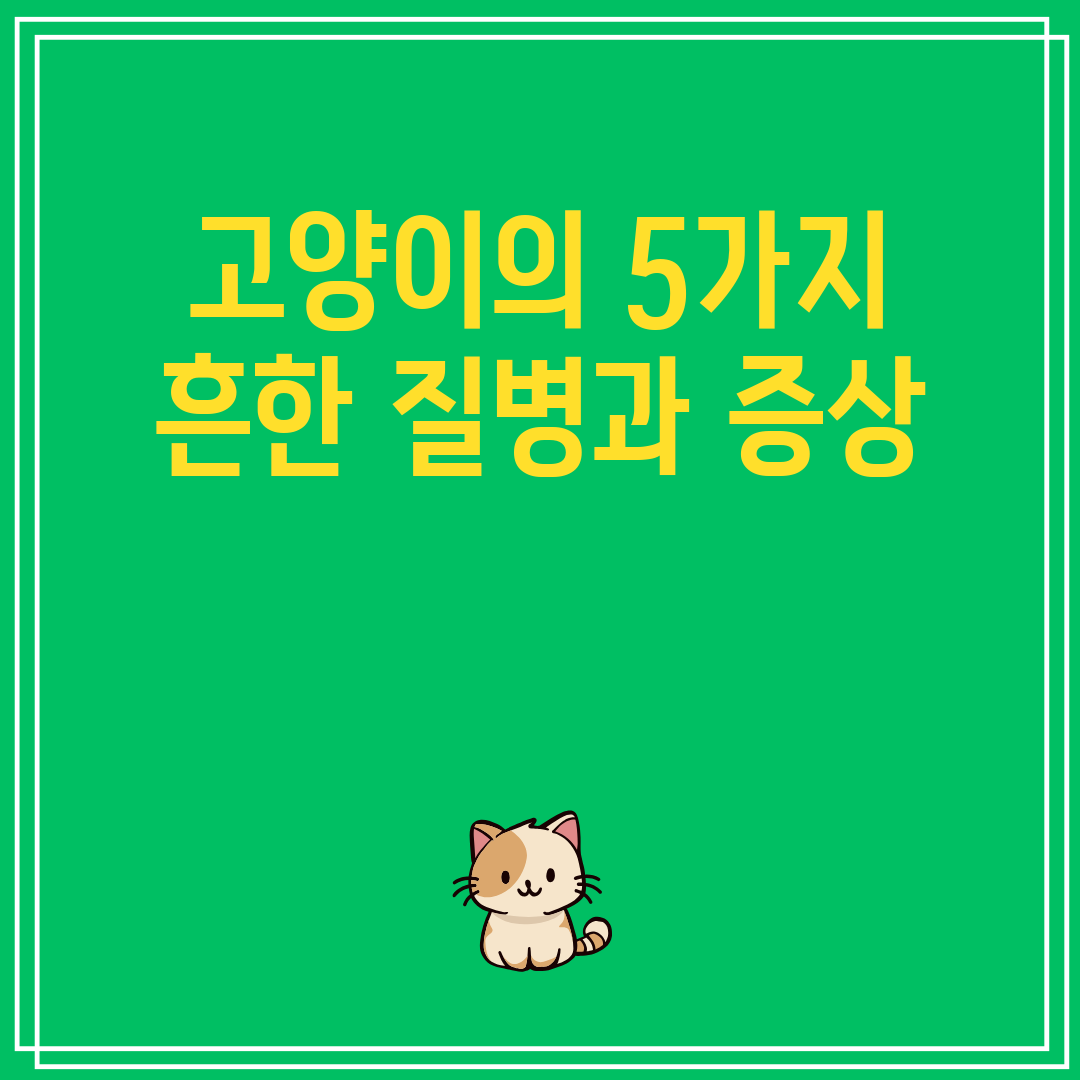 고양이는 귀여우며 애정을 갖기에 좋은 반려동물이지만 질병에 걸리기도 합니다. 고양이의 질병 증상을 조기에 파악하면 신속한 치료를 받을 수 있으며 이로써 고양이의 건강과 행복을 보장할 수 있습니다. 이 블로그 글에서는 고양이에게 흔히 발생하는 5가지 질병과 이를 나타내는 증상을 살펴봅니다. 이 정보를 통해 고양이를 건강하고 행복하게 키울 수 있기를 바랍니다.
