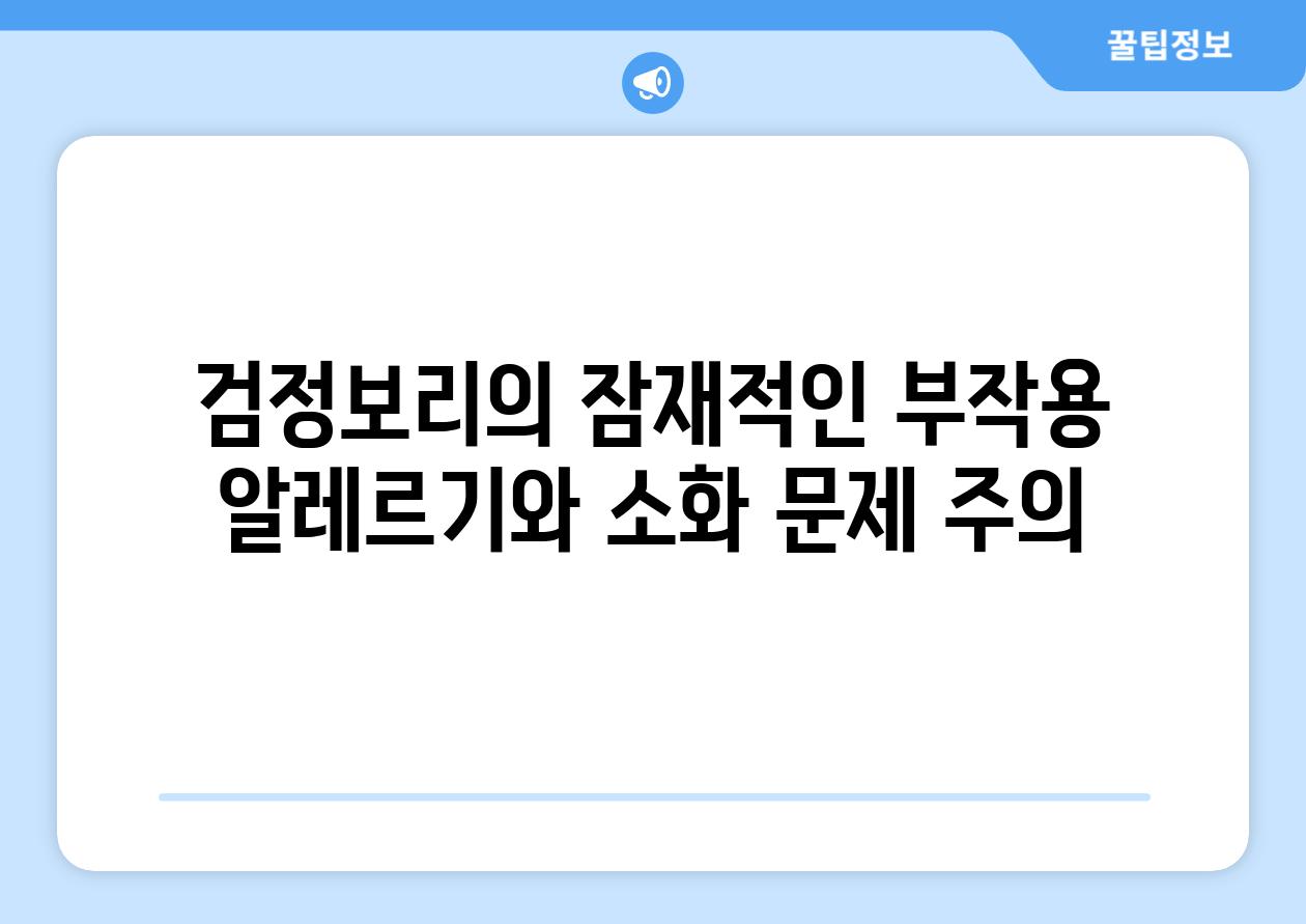 | 알레르기 | 발진, 가려움증, 호흡 곤란 | 검정보리나 다른 곡물 알레르기가 있는 개인 피하기 |