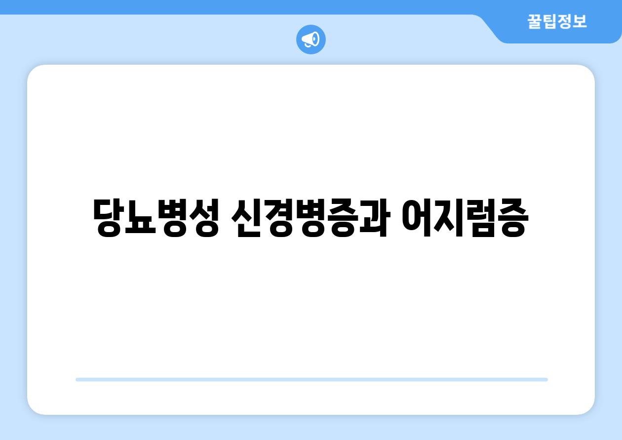 당뇨병성 신경병증은 당뇨병으로 인한 신경 손상으로, 균형 및 운동 조절을 담당하는 신경에 영향을 미칠 수 있습니다. 이로 인해 어지럼증, 균형 상실, 졸도 등의 증상이 나타날 수 있습니다.