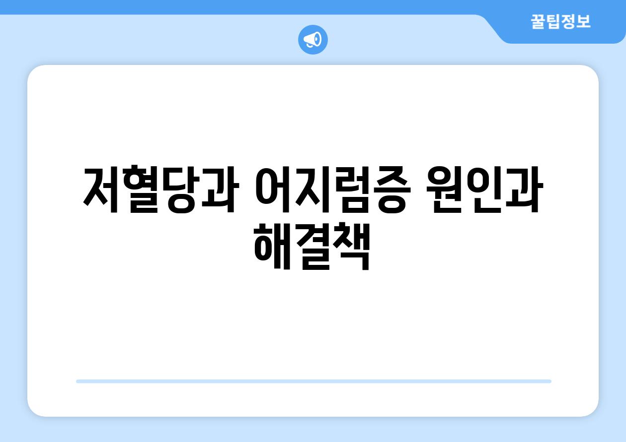 | 저혈당과 어지럼증 원인과 해결책 |
