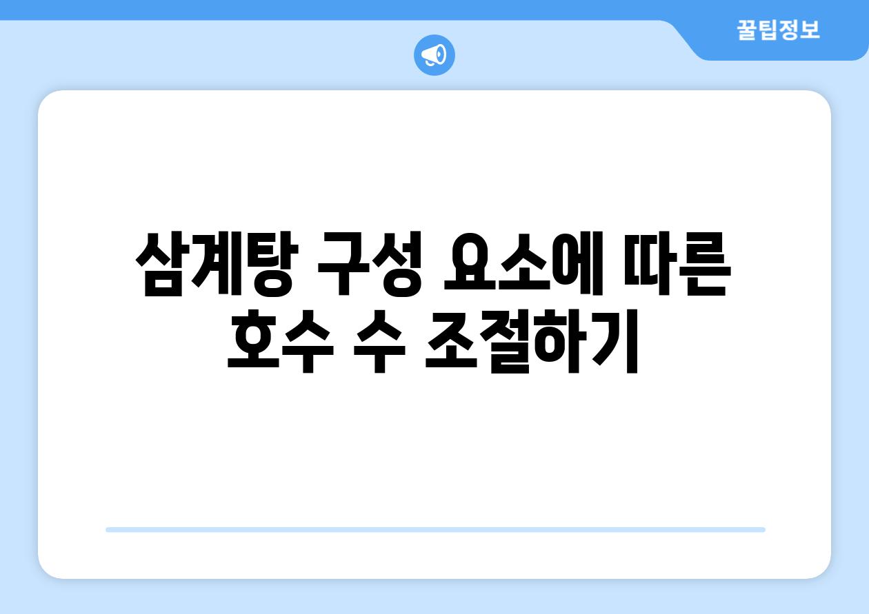 삼계탕을 만들 때 사용하는 호수 수가 전체적인 요리의 맛과 영양가에 큰 영향을 줄 수 있습니다. 최적의 결과를 얻으려면 다음 단계를 따라 적합한 호수 수를 선택하세요.
