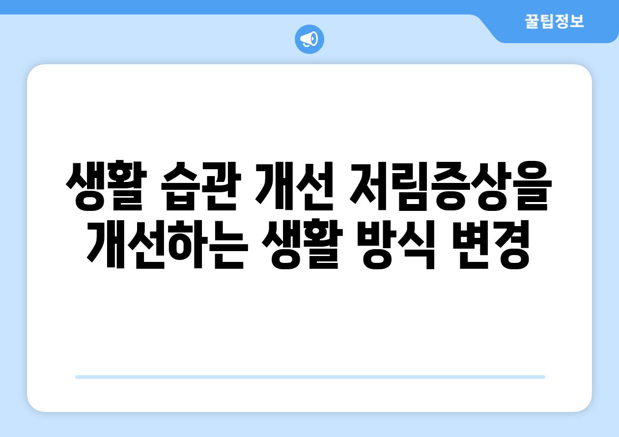 | 생활 습관 개선 저림증상을 개선하는 생활 방식 변경 |