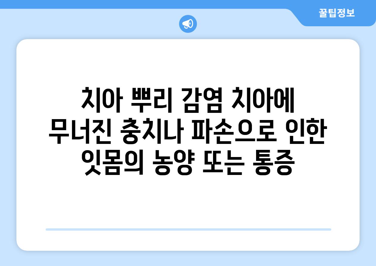 치아 뿌리 감염 치아에 무너진 충치나 파손으로 인한 잇몸의 농양 또는 통증