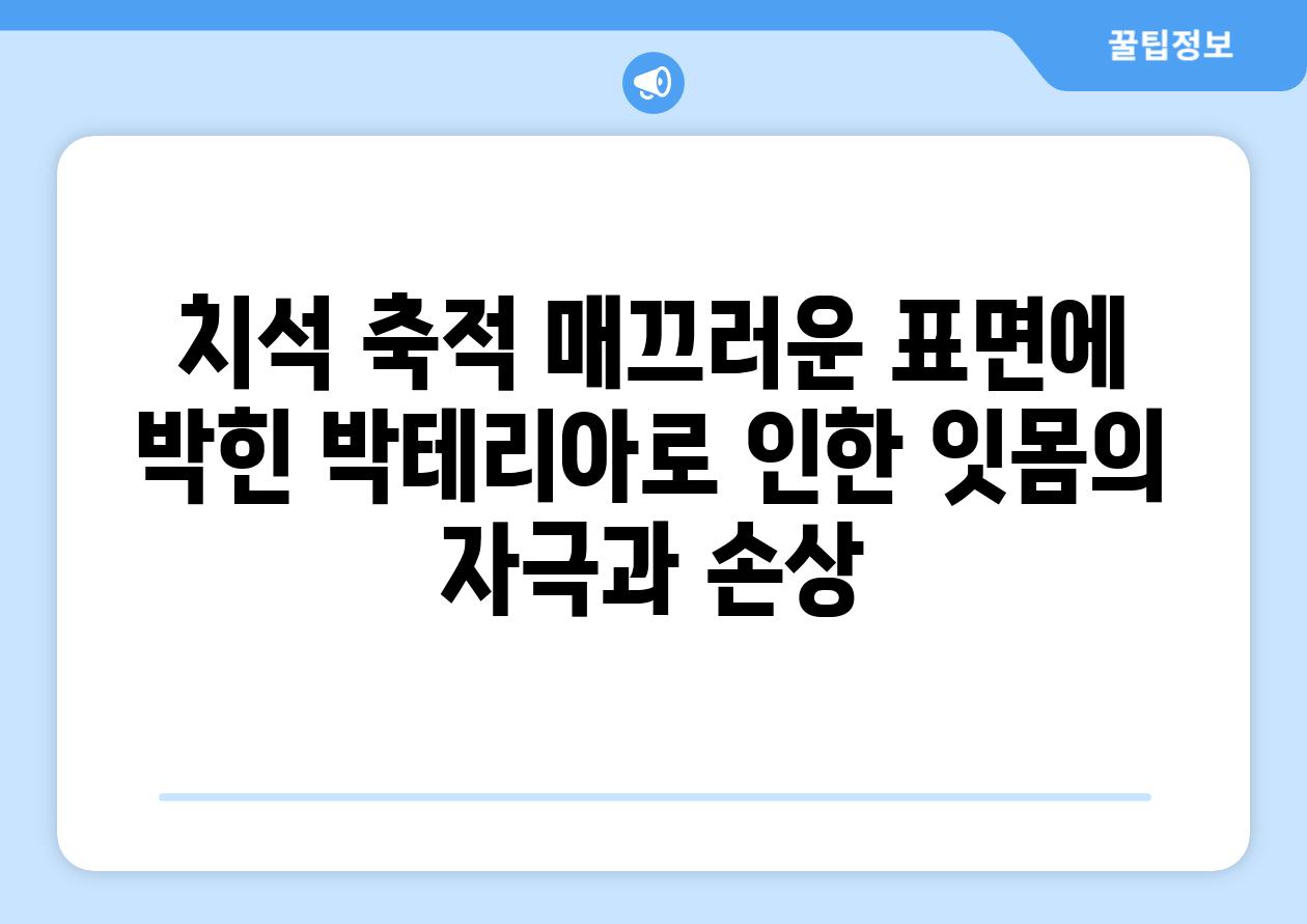 치석 축적 매끄러운 표면에 박힌 박테리아로 인한 잇몸의 자극과 손상
