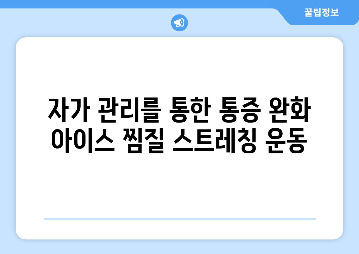 | 자가 관리를 통한 통증 완화 아이스 찜질, 스트레칭, 운동 |