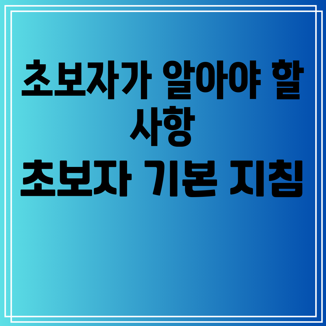 초보자가 알아야 할 사항